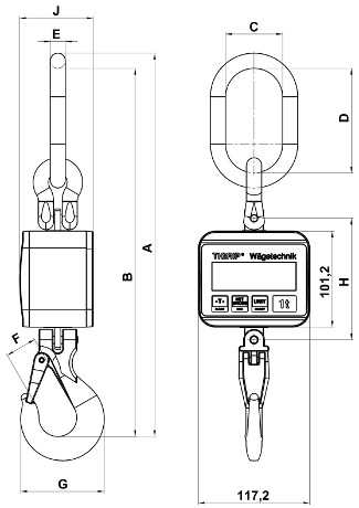 | Kranhakenwaage Modell TKL 12,0 mit Digitalanzeige | Nennlast 12000 kg Meßbereich 0 - 12,0 t, Gewicht mit Anschlagmittel 20,0 kg | 0,00 EUR |