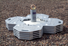 für Dächer aus Beton und Teermembran. Lieferumfang des freistehenden Dach-Gegengewichtsankers: vier gummibeschichtete Platten zu je 20 kg, z